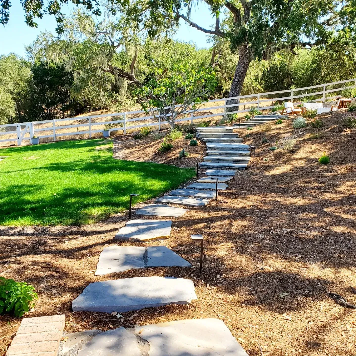 Creation of elegant walkways using natural stone, pavers, or concrete to establish clear traffic patterns while enhancing landscape aesthetics.